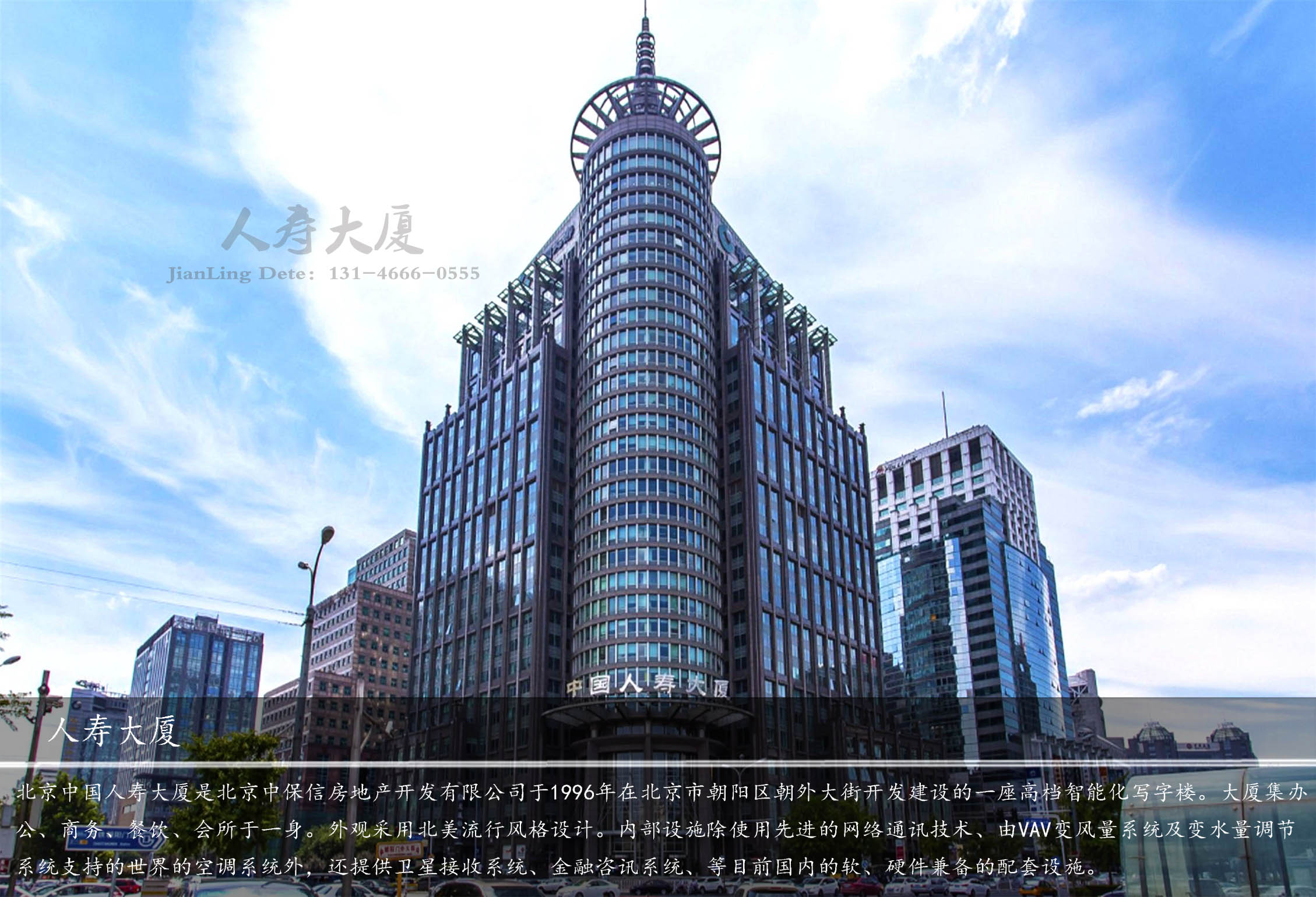 北京中國人壽大廈是北京中保信房地產(chǎn)開發(fā)有限公司于1996年在北京市朝陽區(qū)朝外大街開發(fā)建設的一座高檔智能化寫字樓。大廈集辦公、商務、餐飲、會所于一身。外觀采用北美流行風格設計。內(nèi)部設施除使用先進的網(wǎng)絡通訊技術、由VAV變風量系統(tǒng)及變水量調(diào)節(jié)系統(tǒng)支持的世界的空調(diào)系統(tǒng)外,還提供衛(wèi)星接收系統(tǒng)、金融咨訊系統(tǒng)、消防自動報警系統(tǒng)、樓宇自控系統(tǒng)、保安監(jiān)控系統(tǒng)、車庫管理系統(tǒng)等目前國內(nèi)的軟、硬件兼?zhèn)涞呐涮自O施。大廈從外觀、內(nèi)部設置、室內(nèi)精裝及功能設施等各方面都將成為北京21世紀新型智能化寫字樓的代表作。