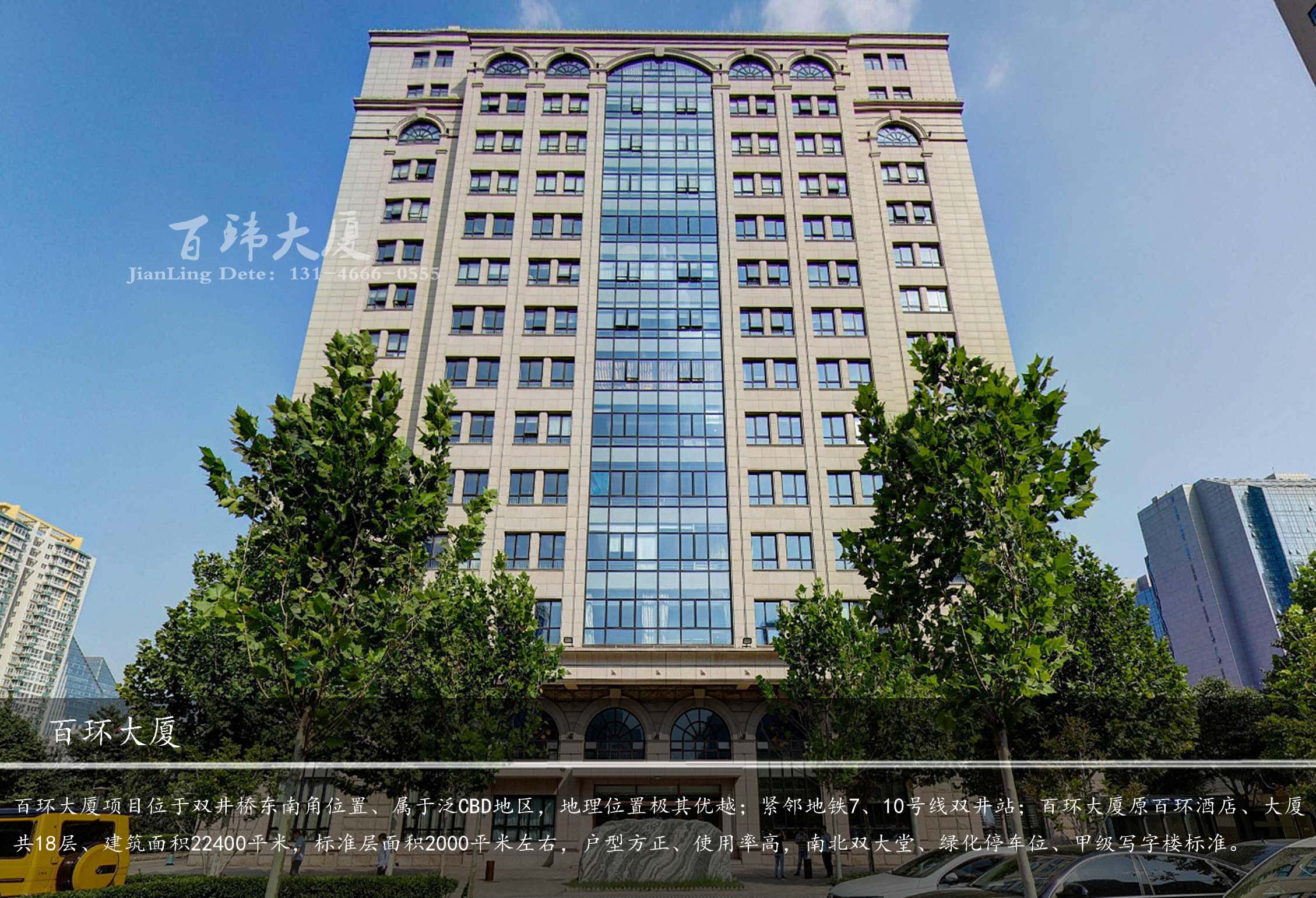 百環(huán)大廈原百環(huán)酒店、大廈共18層、建筑面積22400平米,標(biāo)準(zhǔn)層面積2000平米左右,戶型方正、使用了率高,南北雙大堂、甲級寫字樓。