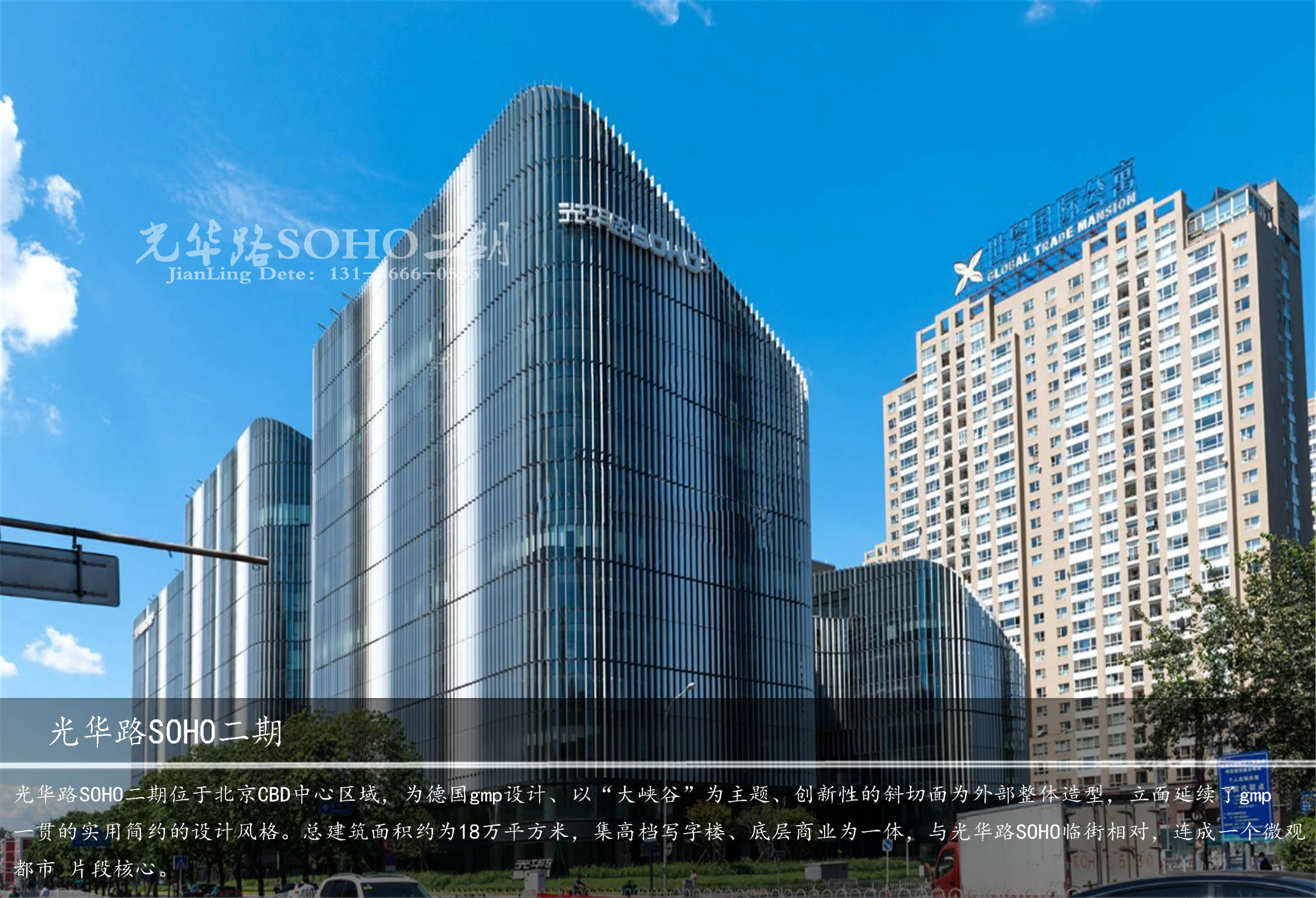 光華路SOHO二期位于北京CBD中心區(qū)域與光華路SOHO臨街相對(duì),連成一個(gè)微觀都市 片段核心,周邊圍繞僑福芳草地、世貿(mào)天街、財(cái)富中心、國(guó)貿(mào)3期、央視新址等豐富的商業(yè)形態(tài)與眾不同的都市人群匯聚于此,享受完整的日常辦公及休閑娛樂。