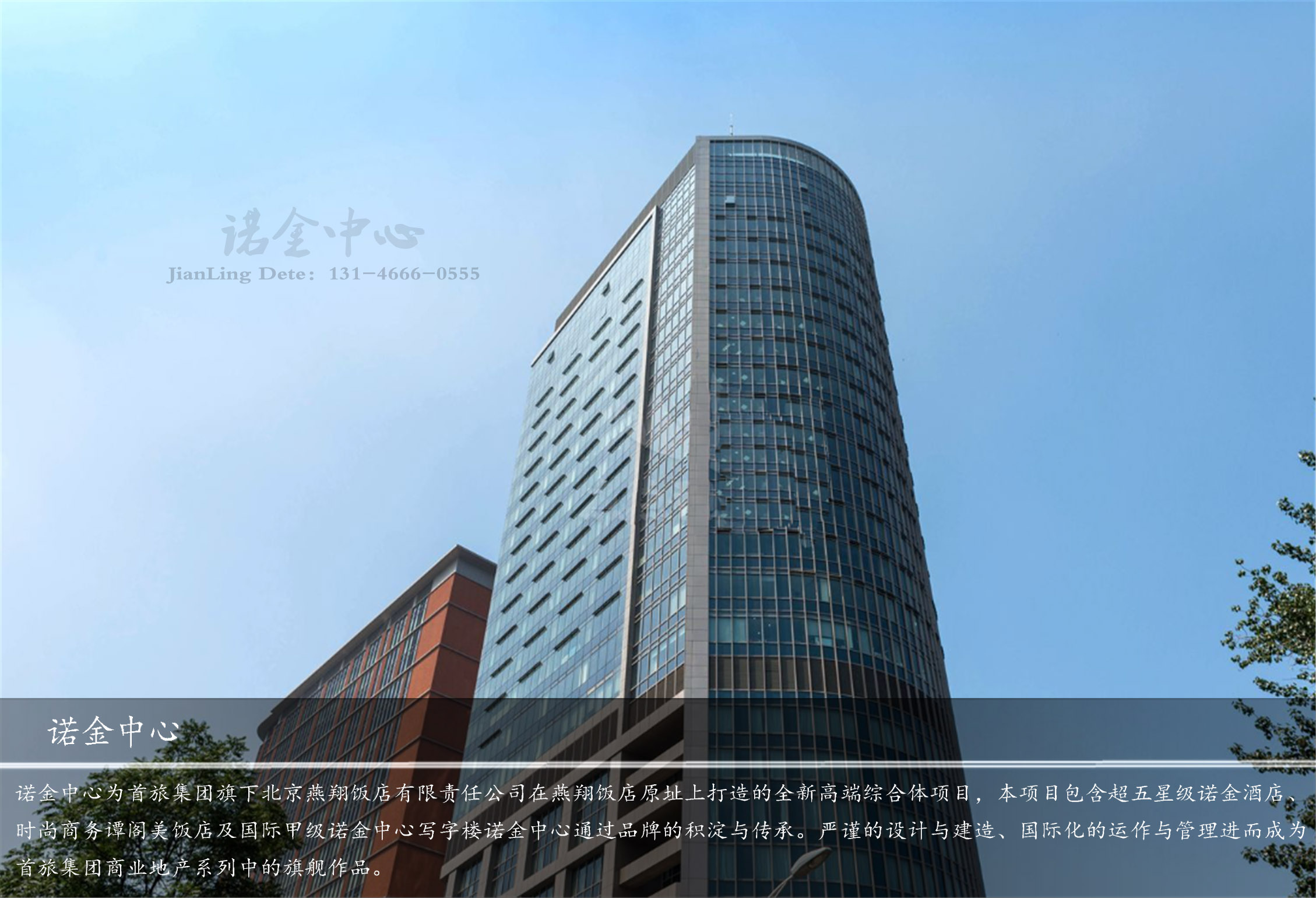 諾金中心為首旅集團旗下北京燕翔飯店有限責任公司在燕翔飯店原址上打造的全新高端綜合體項目,本項目包含超五星級諾金酒店、時尚商務譚閣美飯店及國際甲級諾金中心寫字樓 諾金中心通過品牌的積淀與傳承。嚴謹?shù)脑O計與建造、國際化的運作與管理進而成為首旅集團商業(yè)地產(chǎn)系列中的旗艦作品。