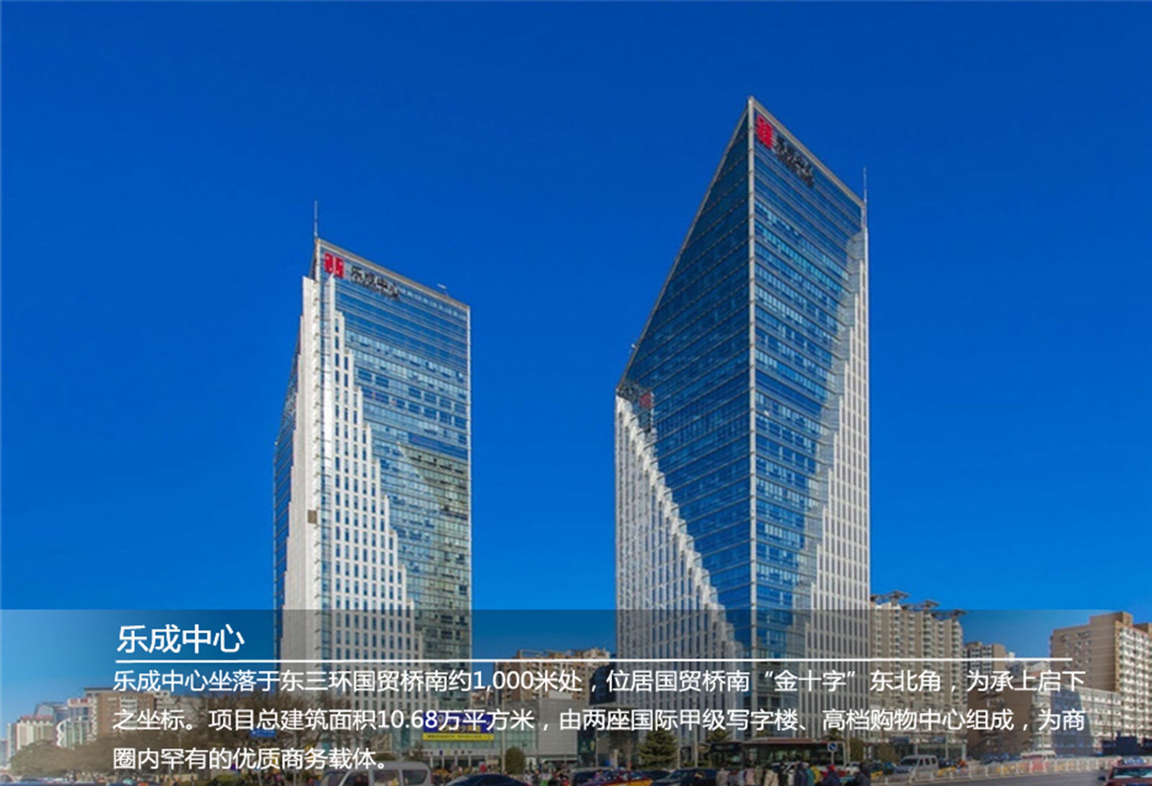 北京樂(lè)成中心 位于東三環(huán)、廣渠路黃金交匯處——雙井橋東北角,距CBD的核心建筑國(guó)貿(mào)中心僅1000米,并與地鐵十號(hào)線(xiàn)直接聯(lián)通,與中關(guān)村、亞奧商圈、國(guó)貿(mào)商圈等重要商務(wù)結(jié)集地對(duì)接。為單一產(chǎn)權(quán)優(yōu)質(zhì)寫(xiě)字樓,立面材質(zhì)與國(guó)貿(mào)同級(jí),甲級(jí)硬件標(biāo)準(zhǔn)與高端商務(wù)形象相得益彰。頂層挑高19米的空中會(huì)所,可鳥(niǎo)瞰CBD,縱攬全球商務(wù)大勢(shì)。