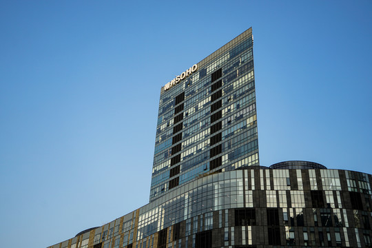 本項目位于北京CBD中央商務(wù)區(qū)內(nèi),東至商務(wù)中心區(qū)50米中軸線綠化帶;南側(cè)為商務(wù)中心區(qū)路;西側(cè)為東大橋東側(cè)路;北側(cè)緊鄰朝陽路。建設(shè)用地面積19975.06平方米,總建筑面積約為15萬平方米,集商業(yè),寫字樓為一體,由兩棟十一層的環(huán)狀裙樓和一棟二十五層的主樓咬合組成。兩棟環(huán)狀裙樓之間用18米的露空通廊隔開,但在每層均有樓梯、扶梯和連廊在水平、垂直方向連接,形成一個有機(jī)的整體。商業(yè)部分面積約為6.45萬平方米,寫字樓面積約為5.67萬平方米。
